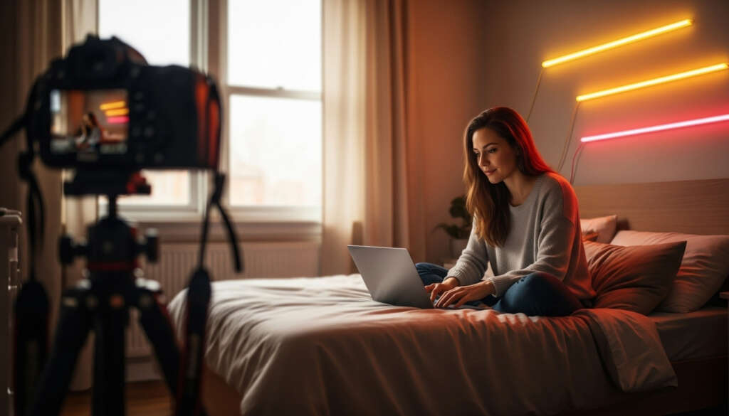 Estudios modernos con iluminación profesional, cámaras de alta calidad y conexiones a Internet fiables.
